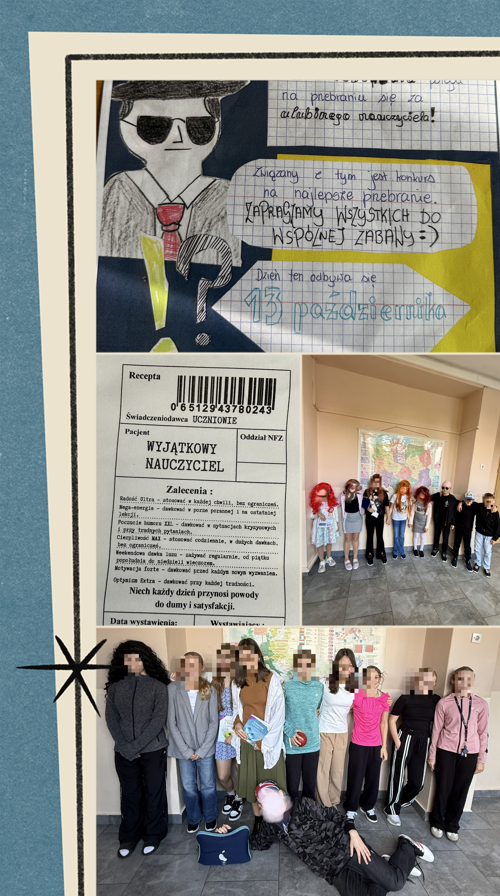 13 października z okazji Dnia Edukacji Narodowej Samorząd Uczniowski zorganizował Dzień Sobowtóra. Uczniowie mogli przebrać się za swoich ulubionych nauczycieli a wszyscy pracownicy szkoły zostali obdarowani receptami zdrowia.😀