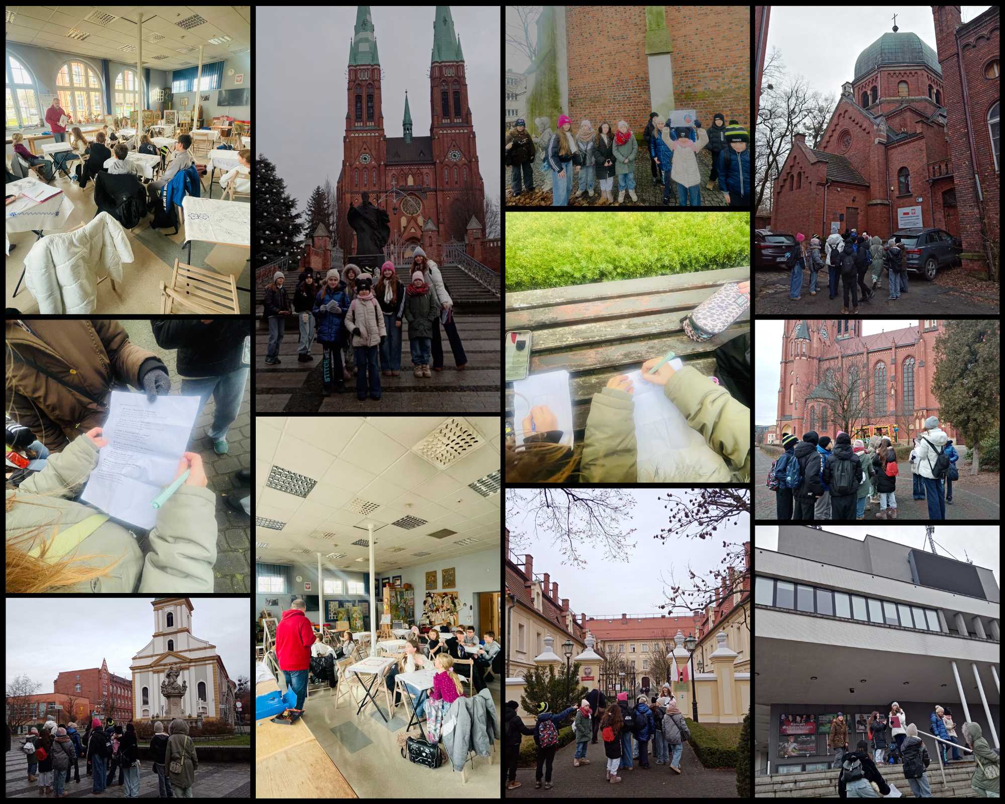 Klasa 4b wzięła udział w grudniu w wyjściu studyjnym w ramach przedmiotu edukacja regionalna. Celem zajęć było poznanie najważniejszych miejsc rybnickiego śródmieścia poprzez udział w terenowej grze edukacyjnej „Tropem Śródmieścia Rybnika”. Uczniowie, pracując w zespołach, wykonywali zadania, odkrywali ciekawostki i poznawali historię miasta w aktywny oraz angażujący sposób, okazując przy tym dużo entuzjazmu. Po zakończeniu gry terenowej dzieci uczestniczyły w warsztatach edukacyjnych „Straszki śląskie” w Centrum Edukacji Regionalnej. W trakcie zajęć brały udział w interaktywnej grze, w której mogły samodzielnie decydować o losach bohaterów Rybnika odwiedzanych przez śląskie straszki. Był to niezwykle emocjonujący i inspirujący dzień, który pozwolił uczniom odkrywać region w twórczy i niecodzienny sposób.