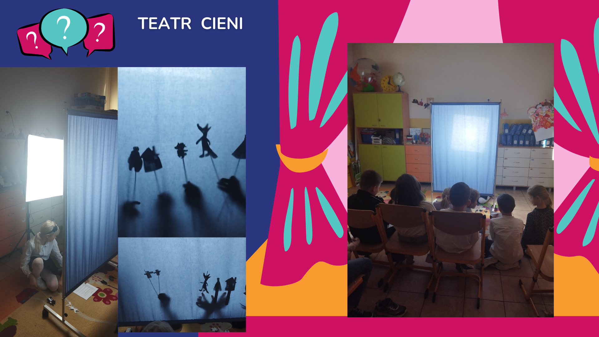 Uczniowie klasy 3A zorganizowali w swojej sali teatrzyk cieni. Przygotowali własnoręcznie wykonane postacie z papieru oraz tło, a następnie za pomocą lampy fotograficznej stworzyli niezwykły pokaz na ekranie. Dzieci w ciekawy sposób poznały, jak powstają cienie i sylwetki, a także doskonaliły współpracę, kreatywność i umiejętność wystąpień publicznych. Teatrzyk cieni był nie tylko świetną zabawą, ale też wartościową lekcją o świetle, ruchu i wyobraźni.